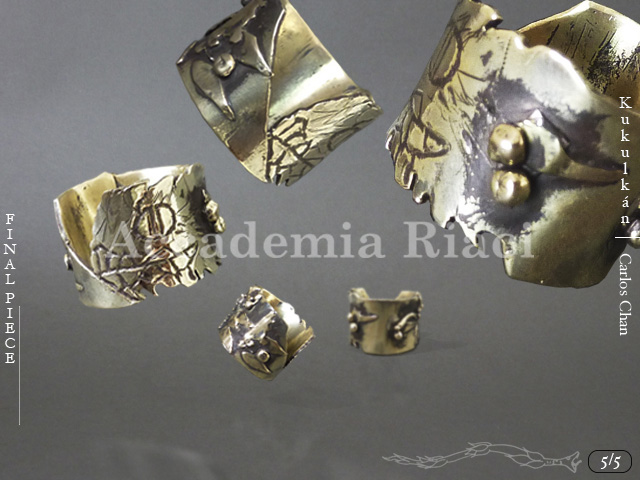 I choose Kukulkàn maya deity to represent México. The design represents the body of the feathered serpent deity in a ring shape, starting with the face coverd with drawn feathers and the mouth of scales, the spheres and other organic forms as overlapping scales with some feather shape elements form the body that ends with an angled shape as tail.