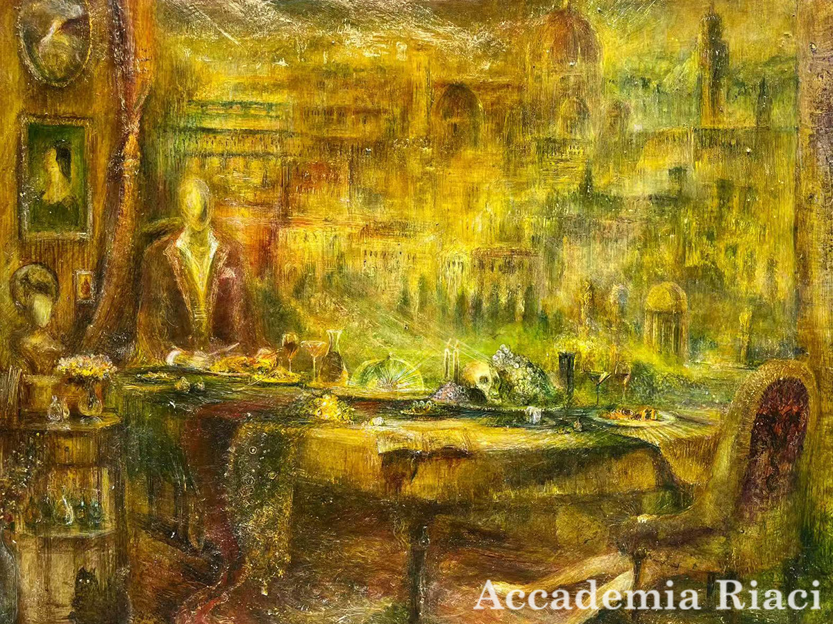 "Hannibal's Dinner," is based on literary and artistic imagery Dot Hannibal Lecter from films and novels. It depicts an ogre enjoying a dinner at dusk in Florence, a scene steeped in classicism, luxury, and drama.