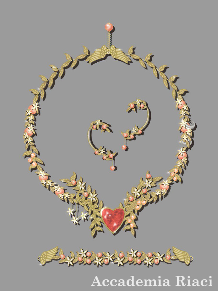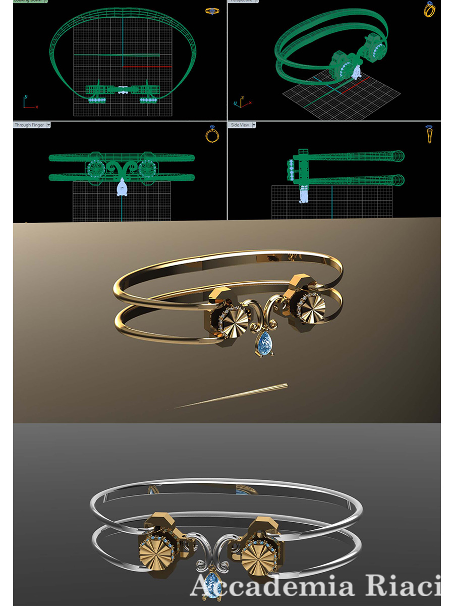 For the metals, I chose to use a combination of gold and silver and the used stones are diamond and pearl.