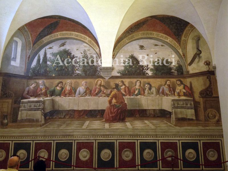 ギルランダイオ 『最後の晩餐』。ルネサンス初期のフィレンツェの画家、ギルランダイオの傑作です。400 cm × 810 cmという大画面で、食堂の壁に描かれていました。