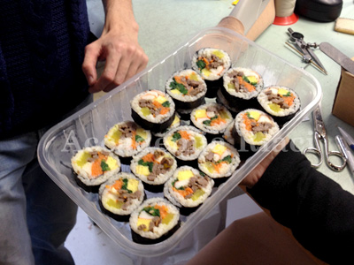 2) Hyunijn’s Mom and sister have also come to the town, and prepared us some yummy Kimbob for our time at school.