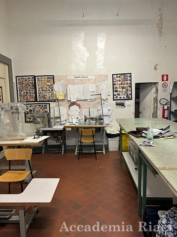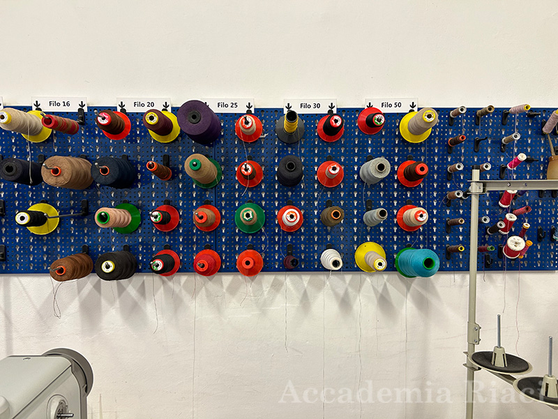 教室の風景、渡り廊下の奥にあります。糸はいろんな色が用意されてます。ファスナーやバッグの金具など教室にあるものは使用可能です。日本語の通訳さんがいるので細かい指示などスムーズに伝わり大変助かりました。