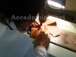 ・After having skimmed each part and applied the rubber glue, we finish sewing with the sewing machine.